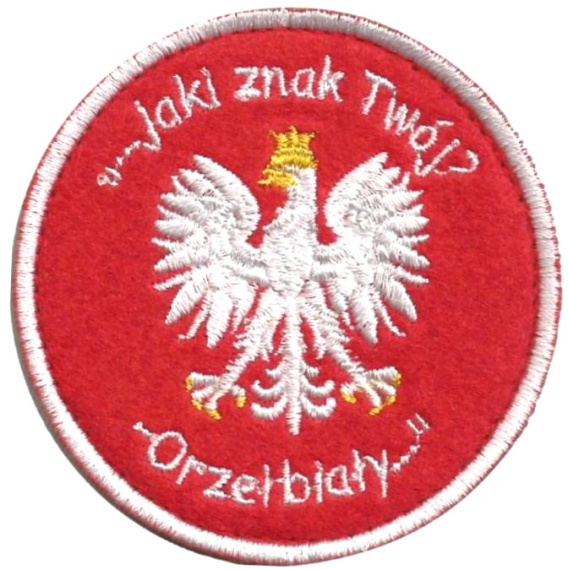 Plakietka została wykonane metodą haftu komputerowego i w zależności od projektu zrealizowana może być na tkaninie lub filcu.