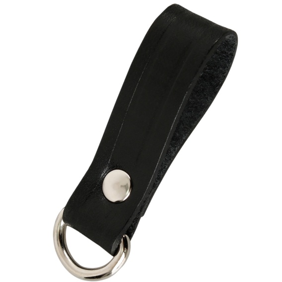 Skórzana Bojówka/Szlufka (Czarna, 20 mm). Wykonana z mocnej skóry naturalnej licowej i zakuta solidnym nitem. Idealna do zawieszania kluczy. Pasuje do pasów służbowych o szerokości maks. 4,8 cm. Wytrzymałe okucia niklowe.