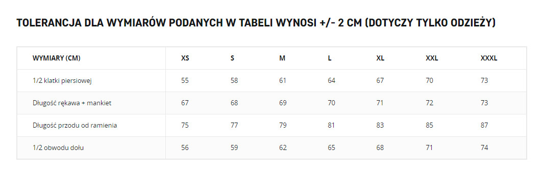 - Kieszeń na lewym przedramieniu (zapięcie na zamek),