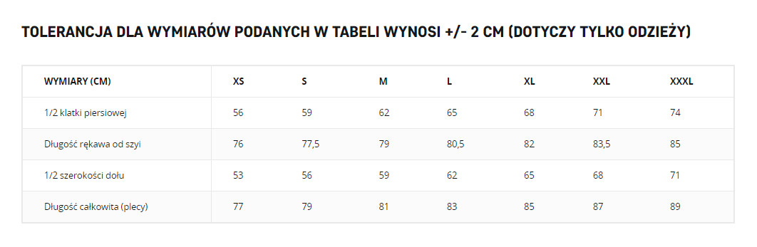 TABELA ROZMIARÓW