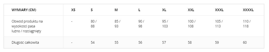 Spodnie zamiast guzika posiadają szeroki rzep umożliwiający regulację w zakresie 6 cm. W pasie spodni wszyta została elastyczna taśma poprawiająca dopasowanie spodni do indywidualnych cech sylwetki.