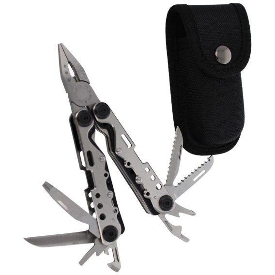 Wykonany ze stali nierdzewnej, solidny multi tool niemieckiej marki Herbertz Solingen. Mimo swoich rozmiarów posiada komplet niezbędnych narzędzi w tym wielofunkcyjne kombinerki.