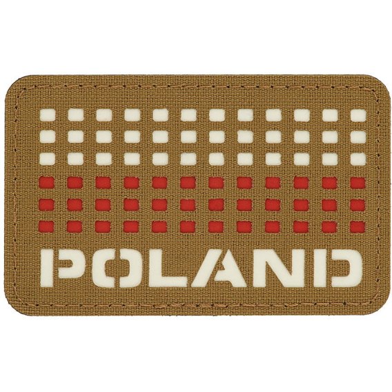 Oryginalna naszywka wykonana z wytrzymałej Cordury 500D z wyciętym w technologii Laser Cut napisem "Poland" oraz pikselową flagą w kolorze biało-czerwonym.