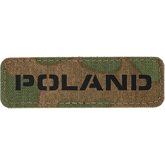 Naszywka wykonana z wytrzymałej Cordury 500D z napisem Poland. Naszywka została wykonana w technologii Laser Cut, co zapobiega strzępieniu się brzegów tkaniny. Emblemat został wyposażony w jednostronny rzep, dzięki któremu można zamocować go do odzieży, plecaka, kasku lub elementów oporządzenia.