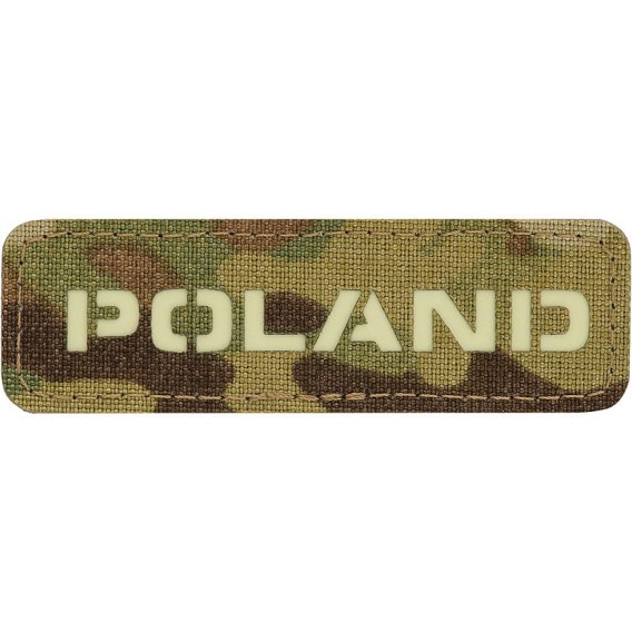 Oryginalna naszywka wykonana z wytrzymałej Cordury 500D z wyciętym w technologii Laser Cut napisem Poland. Brzegi tkaniny nie strzepią się, a naszywka zachowuje swój kształt. Wzór został wykonany z materiału luminescencyjnego, który emituje światło w ciemności. Emblemat został wyposażony w jednostronny rzep, umożliwiający zamocowanie go do odzieży, plecaka, kasku lub elementów oporządzenia.