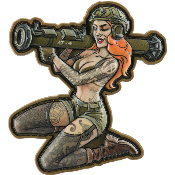 Naszywka przedstawia charyzmatyczną i niezwykle atrakcyjną dziewczynę. Za jej wdziękiem kryje się stalowa determinacja, a granatnik przeciwpancerny AT-4 na ramieniu wyraża gotowość do wkroczenia do bitwy w każdej chwili.