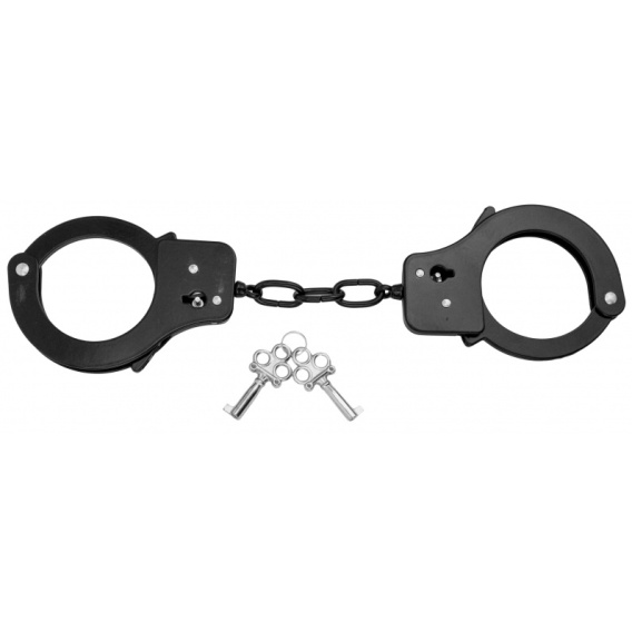 Kajdanki nierdzewne koloru czarnego. Posiadają podwójny zamek. W komplecie dwa kluczyki.