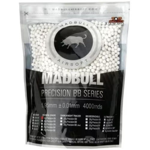 Precyzyjne kulki ASG o gładkiej, polerowanej powierzchni i najwyższej jakości wykonania gwarantowanej przez firmę MadBull (dokładność 0.01mm). Kulki cechują się idealnym rozłożeniem środka ciężkości. Mogą być stosowane w lufach precyzyjnych 6.01-6.04 mm.