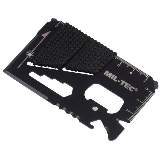 Kompaktowa i poręczna karta survivalowa o wielkości karty płatniczej. Wyposażona w zestaw praktycznych narzędzi oraz w linkę paracord. Przydatna na co dzień, a także w trudnych sytuacjach. W zestawie znajduje się etui.