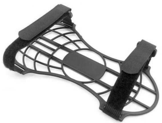 Wykonany z wytrzymałego tworzywa sztucznego ochraniacz na przedramię. Paski mocujące ochraniacz pokrywa rzep, posiadają regulację długości, co sprawia że dorosły i młody użytkownik może dopasować ich długość do obwodu swojego przedramienia.