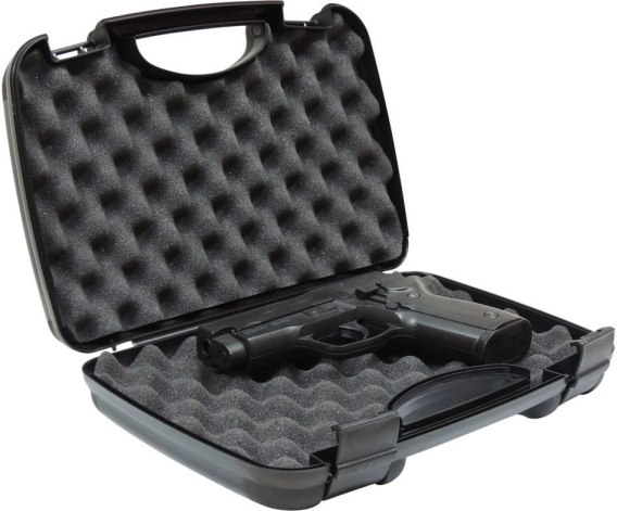 Wykonana z odpornego na zadrapania plastiku walizka, która pozwala na bezpieczny transport pistoletu asg lub pistoletu wiatrówki.