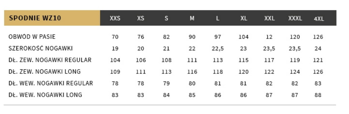 TABELA ROZMIARÓW