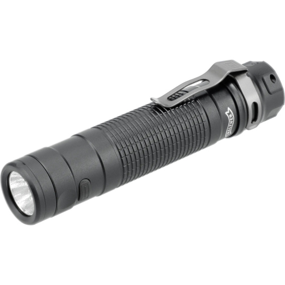 Poręczna latarka Walther EFC2 oferuje cztery poziomy jasności (5/40/350/1000 lumenów) oraz tryby stroboskopowy i beacon (lampa błyskowa). Gdy urządzenia wykorzystuje akumulator 21700, wartość strumienia świetlnego wzrasta do 1200 lumenów. Sterowanie odbywa się za pomocą tylnego włącznika, który umożliwia szybkie włączanie/wyłączanie i chwilowe światło, natomiast boczny przełącznik odpowiada za zmianę jasności i dostęp do trybów specjalnych. Lampa zapamiętuje ostatnio używany poziom jasności i uruchamia się na tym samym ustawieniu. Wbudowane ostrzeżenie informuje o spadku pojemności baterii poniżej 25%.